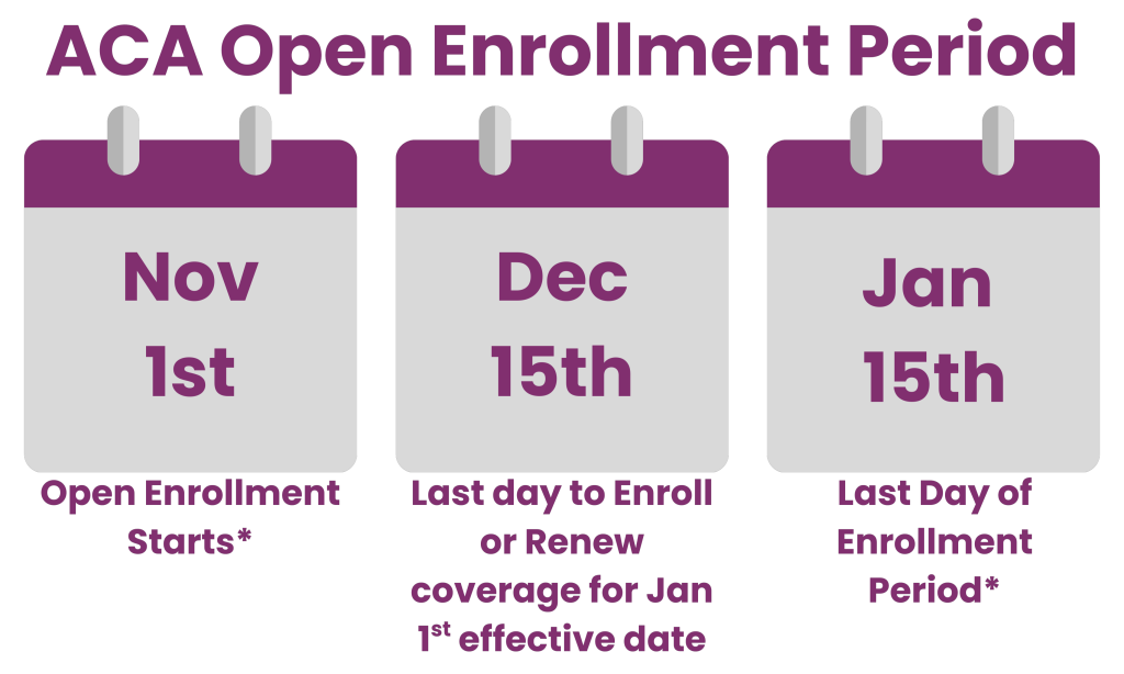 You may still be able to enroll in an ACA health plan outside of the Open Enrollment Period if you qualify for a Special Enrollment Period (SEP). SEPs are triggered by certain life events, such as getting married, having a baby, losing other health coverage, or moving to a new county or state. In addition, households with income at or below 150% of the federal poverty level may qualify for a year-round Special Enrollment Period, as long as they’re eligible for a $0 premium Marketplace plan. Eligibility is determined by the Marketplace and may require income verification. To learn more about your enrollment options, or to get help comparing plans, you can consult a licensed health insurance broker for personalized guidance.