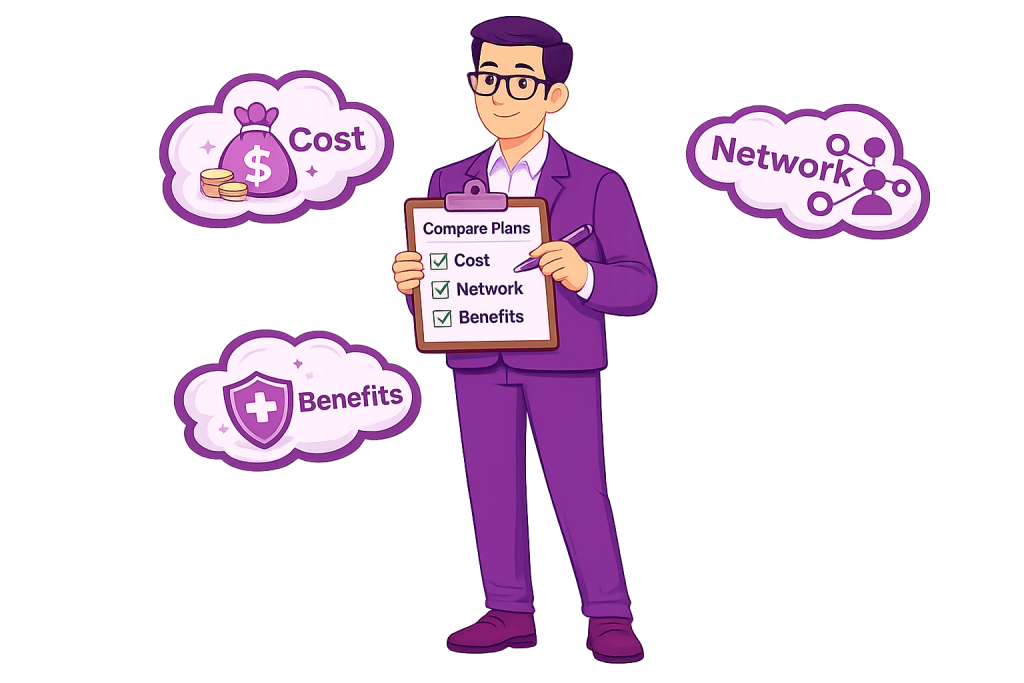 Examine the out-of-pocket cost differences between plans, including the deductible, copayments, and coinsurance of each plan. While a low premium can be appealing, it may lead to higher out-of-pocket costs, especially if you have a chronic condition or frequently need emergency care or extra visits with a doctor. However, if you know you’re in good health and don’t often need medical care, paying a higher premium may not be the right fit for you. Balance cost and coverage according to your financial and medical needs.